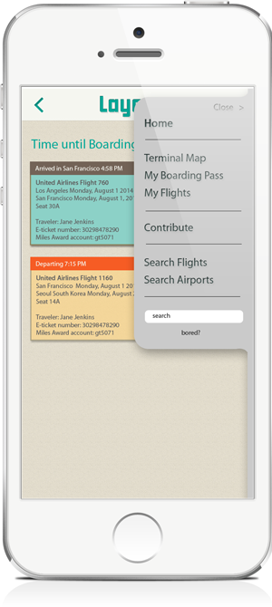 Layover was a three day challenge to go from concept to prototype during an NYU UX design intensive. The idea came from finding a quiet hallway in Chichago O'Hare Terminal F that had tons of seating, plugs and good wifi. Why didn't I know about this earlier? Thus, the idea for layover was born. A app to find and share airport secrets that make layovers easier and maybe even enjoyable. Oh, and get you to the gate on time too.