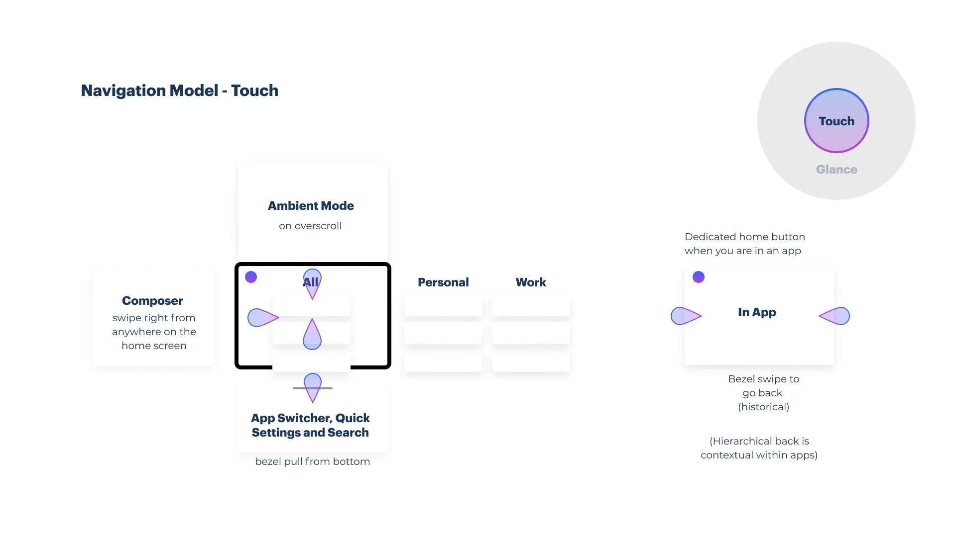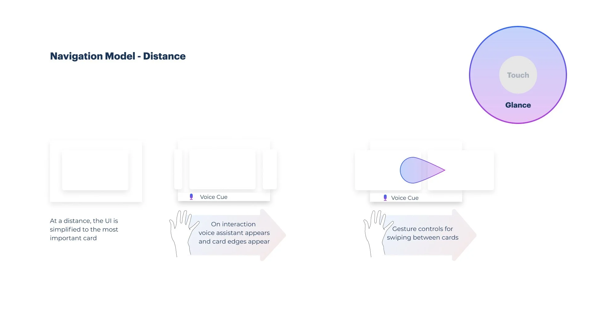 The interaction design needed to function on two levels: casual, across-the-room use and close-up, task-focused engagement. Portal had to support both modes seamlessly. While touch controls and distance-based navigation followed the same core patterns, each required distinct considerations to accommodate differing contexts and user needs.