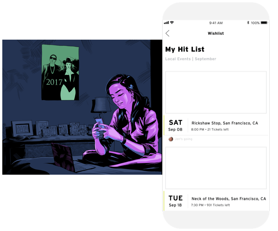 The next day, Danielle sees she has a new StubHub memory from the night out. She goes to her Memory Timeline and sees friends’ photos, professional video, and the set list and she finds the next big event she wants to go to.