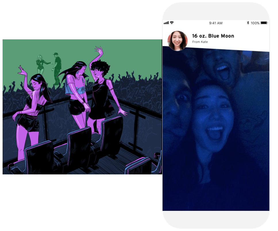 Danielle’s friend Kate is also at the show and has sent a gift from the other side of the stadium. She gets a video from Kate and a drink code to use after the opening act.