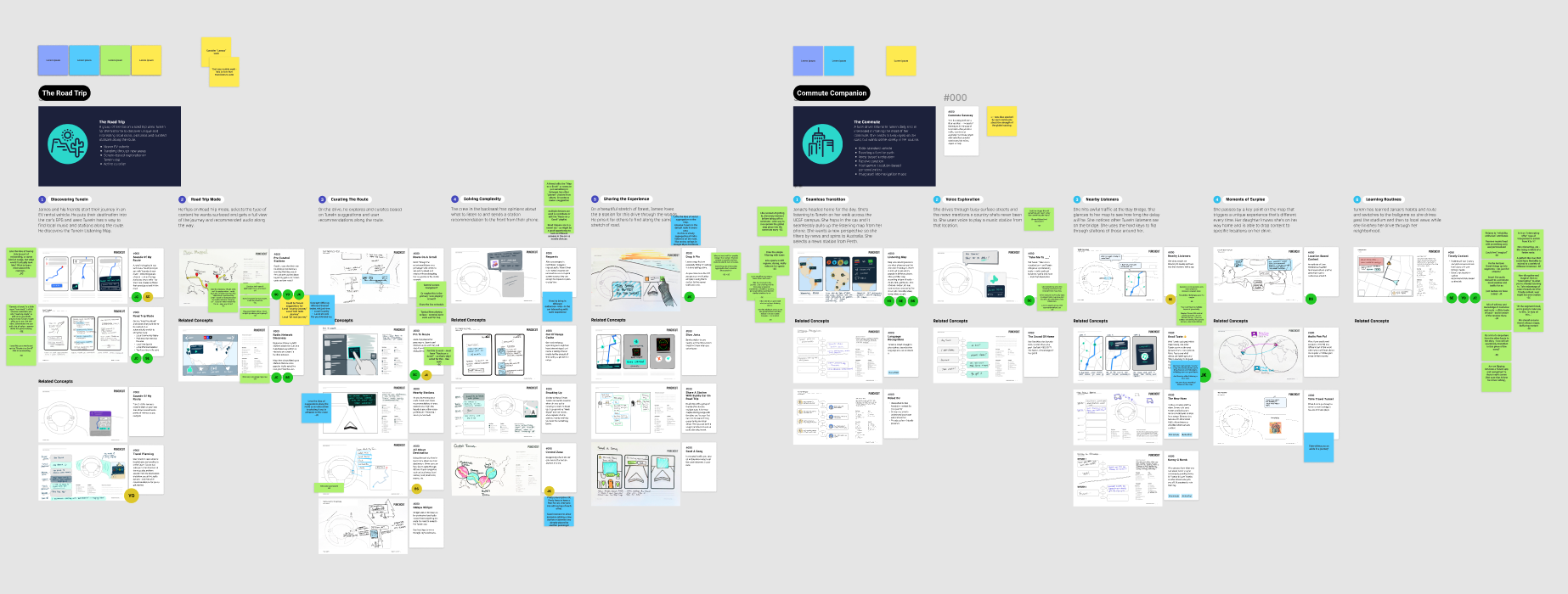With sketches and personas, we built a deck to show the future vision through two stories - The Commute and The Roadtrip. We highlight how the features could play out in a real-world setting, keeping the focus on the user.